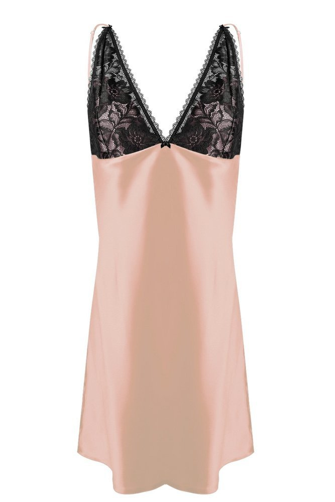 Efektowna koszulka damska z delikatnej i przyjemnej dla ciała satyny na cienkich ramiączkach. Z pozoru prosta, lecz tak naprawdę jest bardzo wyrafinowaną bielizną. Miseczki ozdobione elegancką czarną koronką. Na łączeniu miseczek znajduje się satynowa kokardka. Skład: 100% poliester.