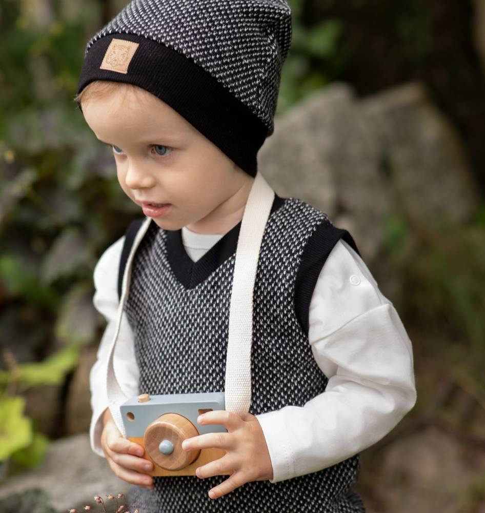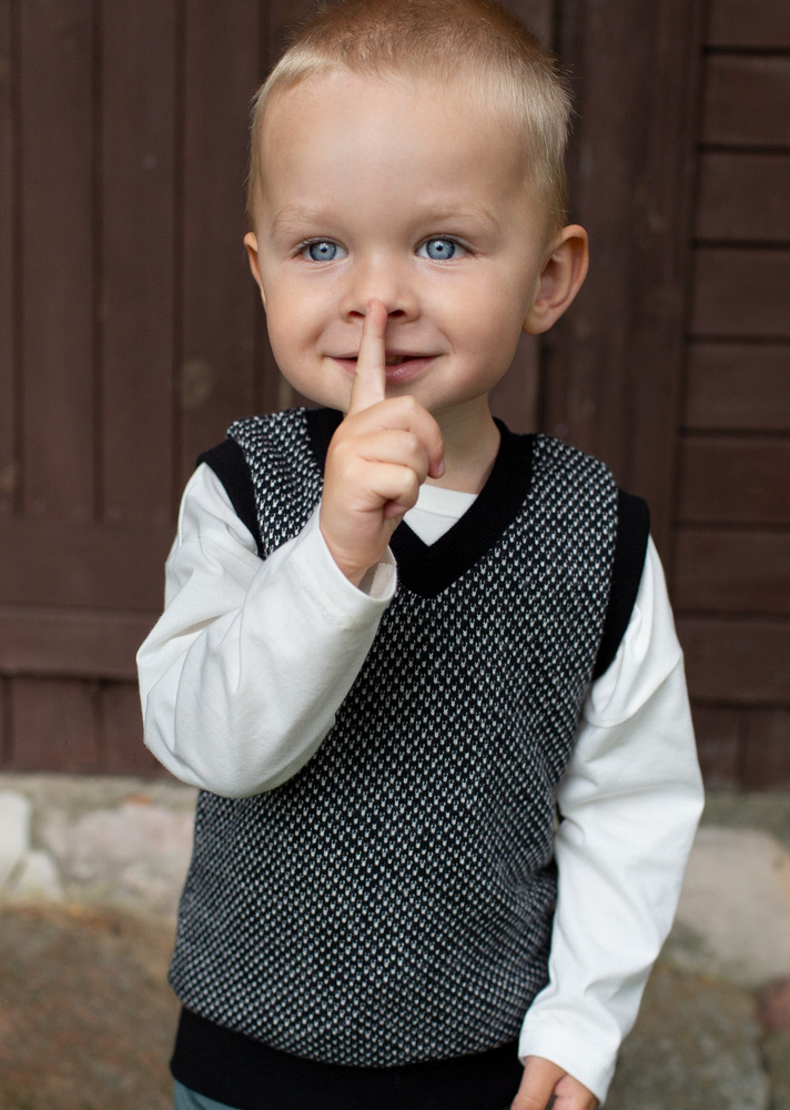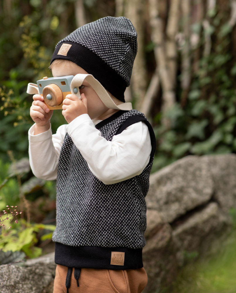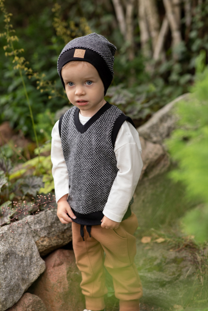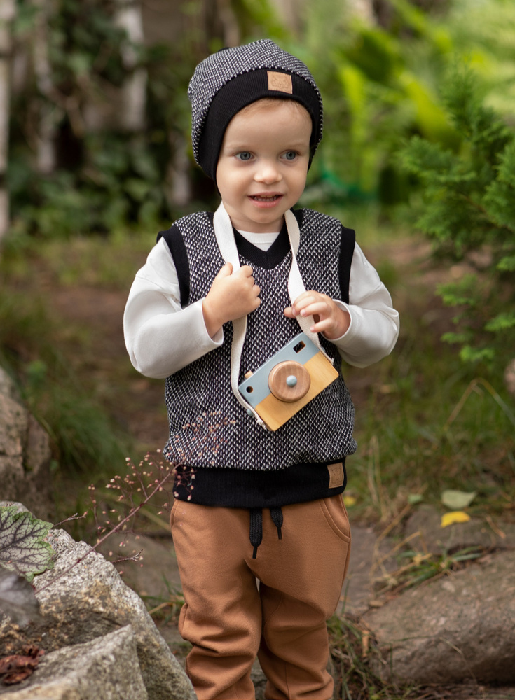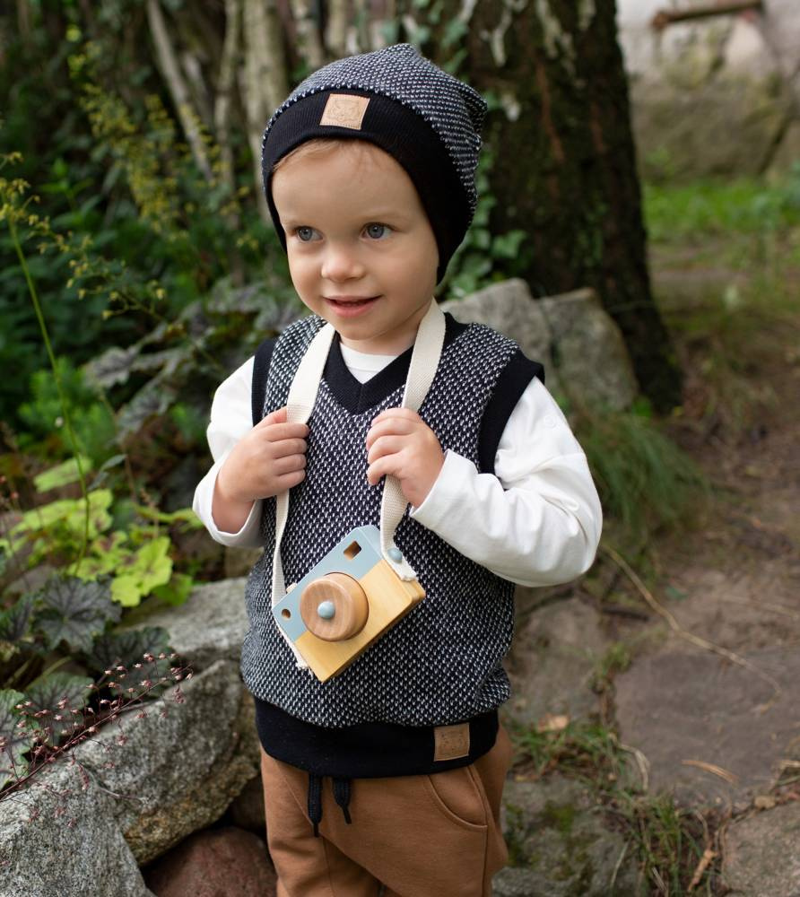 Kamizelka wciągana dla chłopca. Swobodny krój nie krępuje ruchów malucha i zapewnia mu komfort podczas codziennych aktywności. Można jej też używać jako tymczasowe ubranko przy zmieniającej się temperaturze w czasie podróży samochodem.