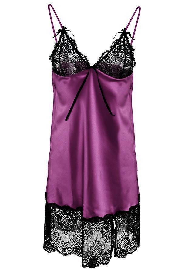 Ramiączka cienkie i regulowane dzięki którym można uzyskać odpowiednio odkryty dekolt. Dół uszyty z delikatnej szlachetnej satyny ozdobiony śliczną czarną koronką.
