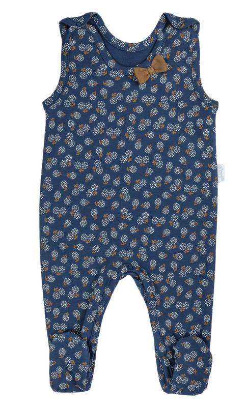 Wygodne śpioszki z nadrukiem, wykonane zostały ze 100% bawełny. Na ramiączkach rozpinane są bezniklowymi napkami, a stópki zabezpieczone są delikatnymi ściągaczami, zapobiegającymi zsunięciu się ubranka.