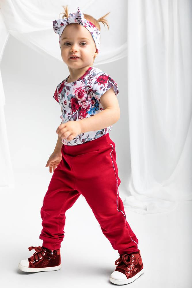 Spodnie dziecięce z lampasami. Nadruk wykonano trwałą i bezpieczną metodą farb wodnych. Wygodny, nieuciskający ściągacz w pasie, utrzymuje spodenki na odpowiednim miejscu, w każdej sytuacji. Świetnie sprawdzą się w domu, na spacerze i podczas wyjazdów. Anatomiczny krój sprawia, że nie krępują ruchów dziecka podczas nauki raczkowania czy chodzenia. Warto o nich pamiętać kompletując wyprawkę dla maluszka. Spodnie stworzą ciekawe zestawy z pozostałymi ubrankami z kolekcji Kate