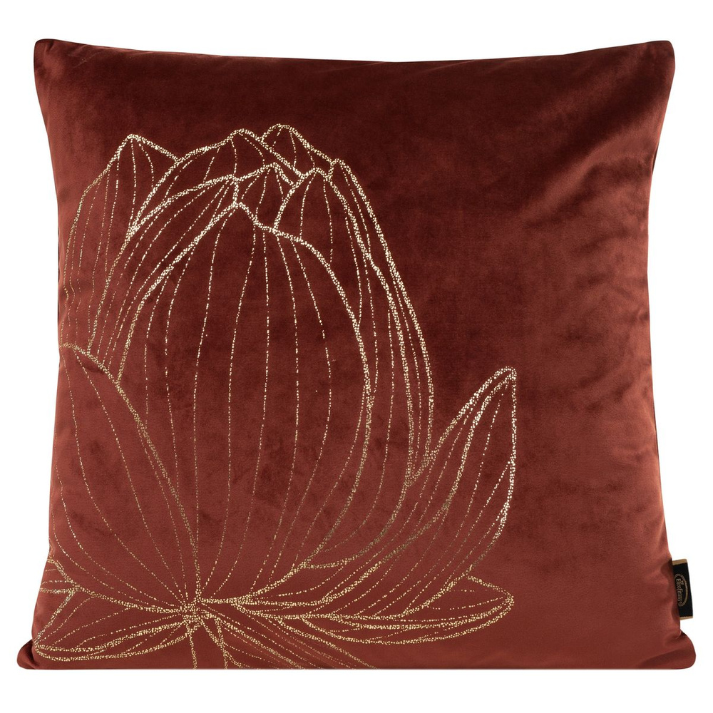 Poszewka dekoracyjna welwetowa Blink 19 kwiat lotosu Eurofirany ceglana