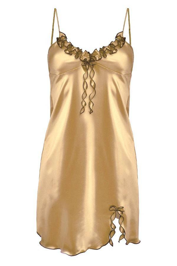Zmysłowa i romantyczna satynowa haleczka firmy DKaren, przód halki tworzą profilowane i laminowane miseczki.