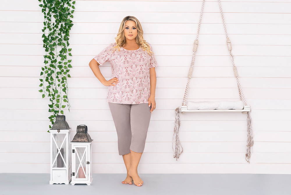 Piżama Damska krótki rękaw, 3/4 spodnie Kalmia Italian Fashion- druk