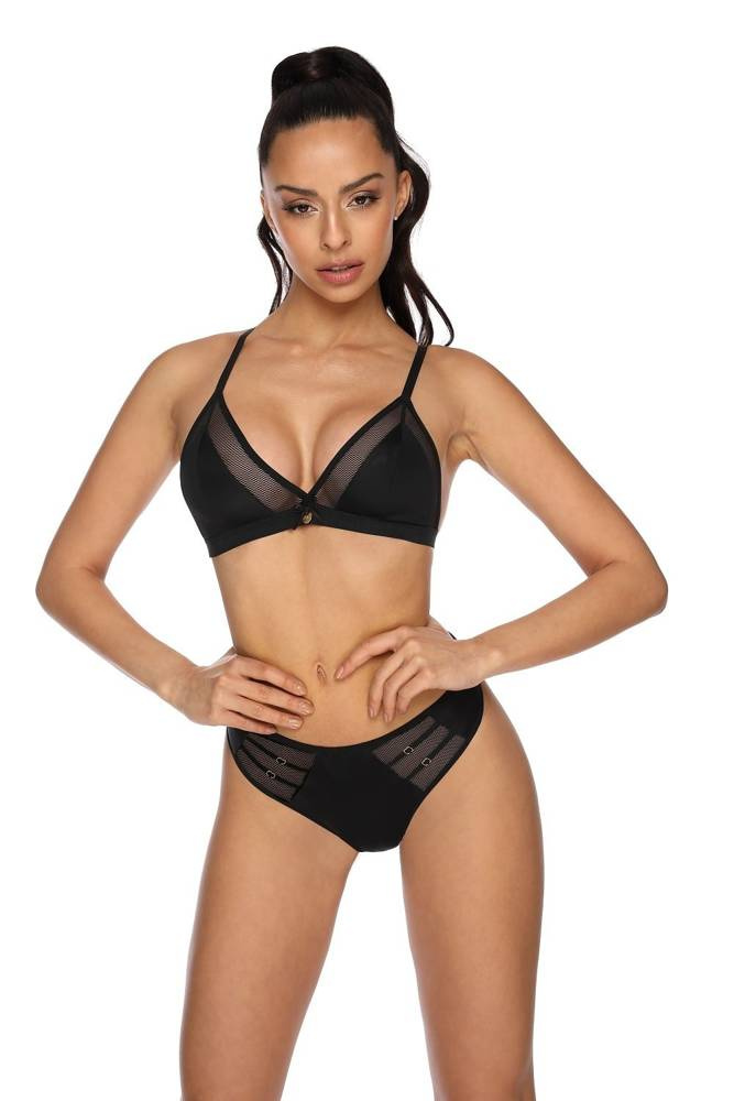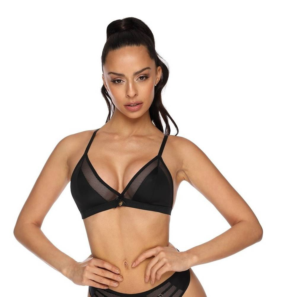 Zmysłowy biustonosz typu soft wykonany z czarnej mikrofibry i delikatnej siateczki.