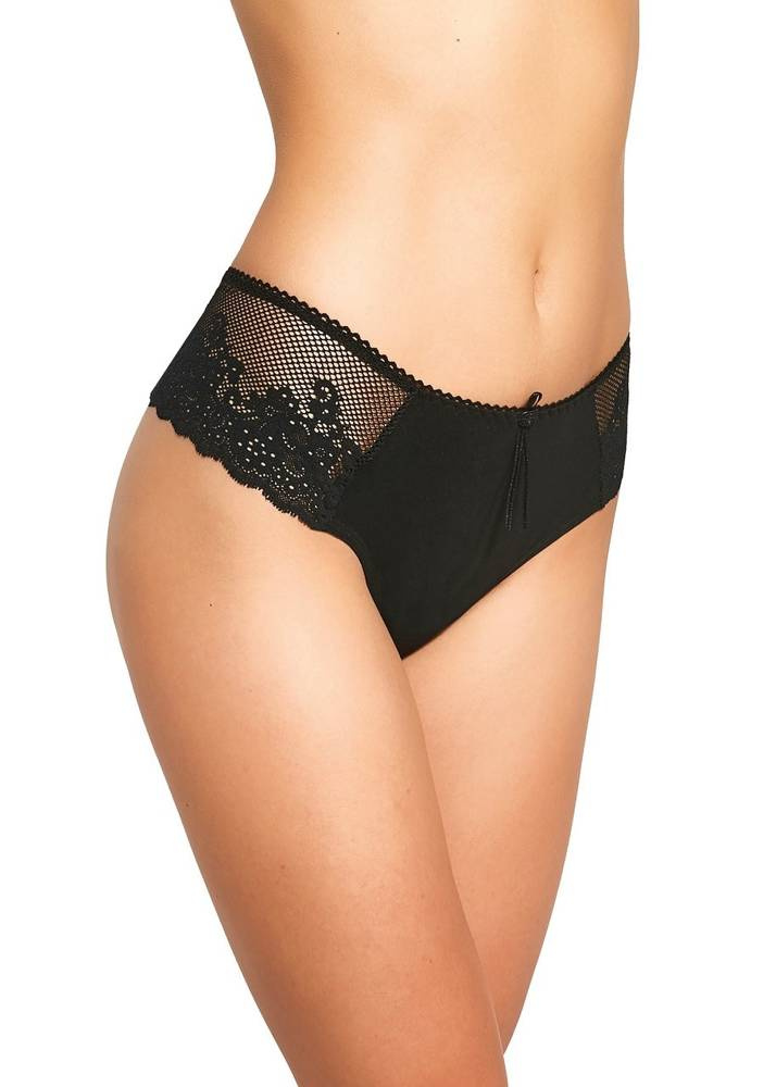 Efektowne bawełniane figi damskie z wysoką linią talii, zabudowane na biodrach. Tył wykończony koronką
