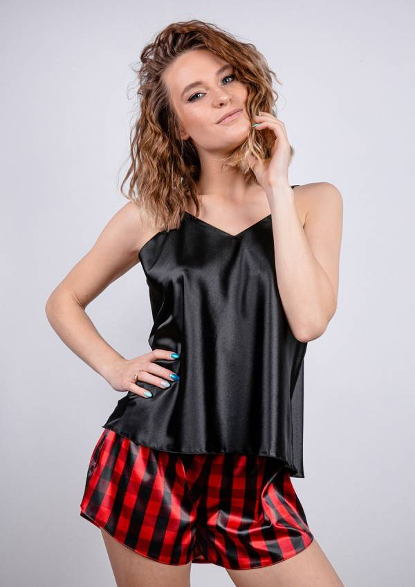 Piżama Damska Satynowa DK-KK DKaren - czarny 017
