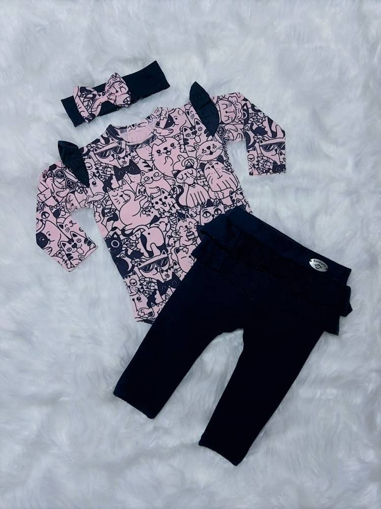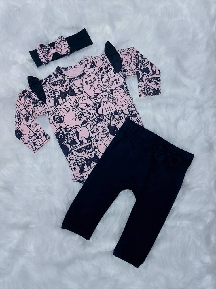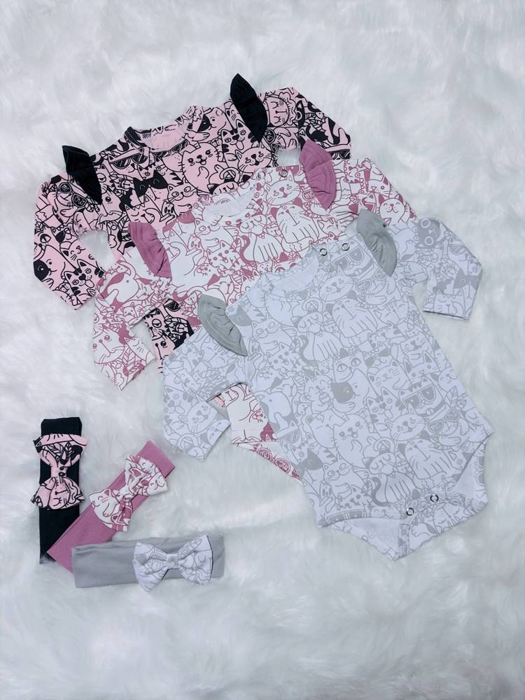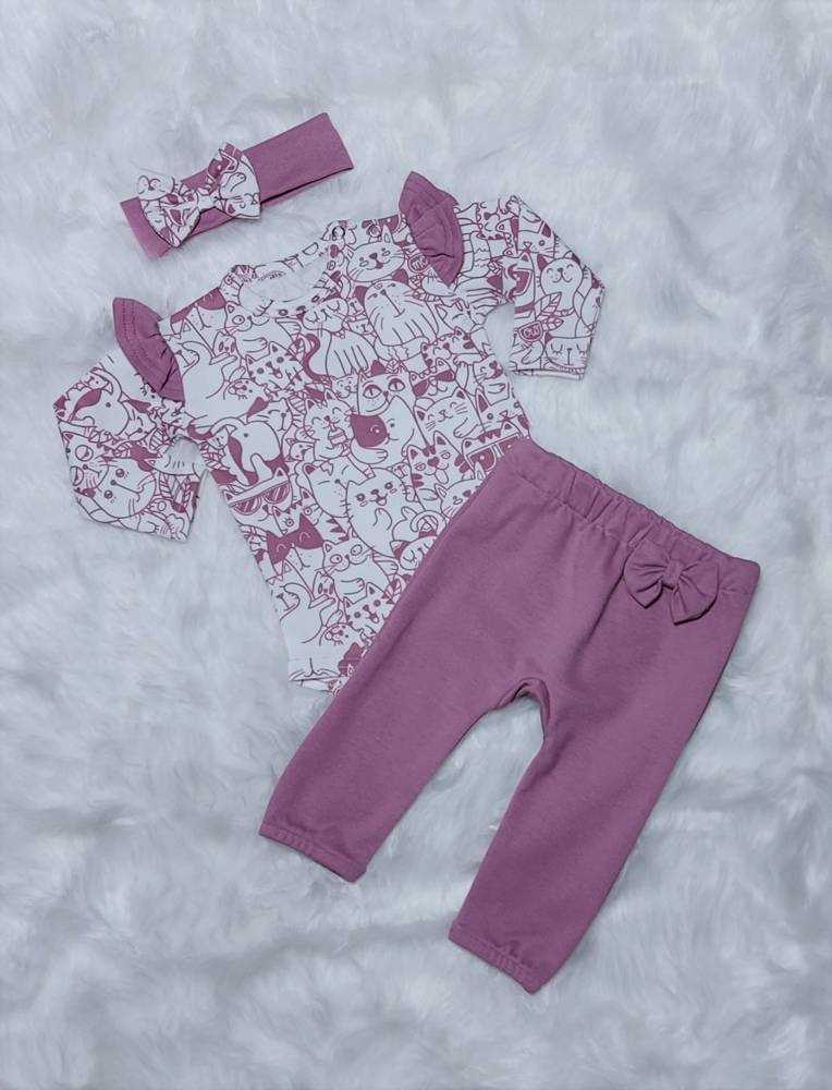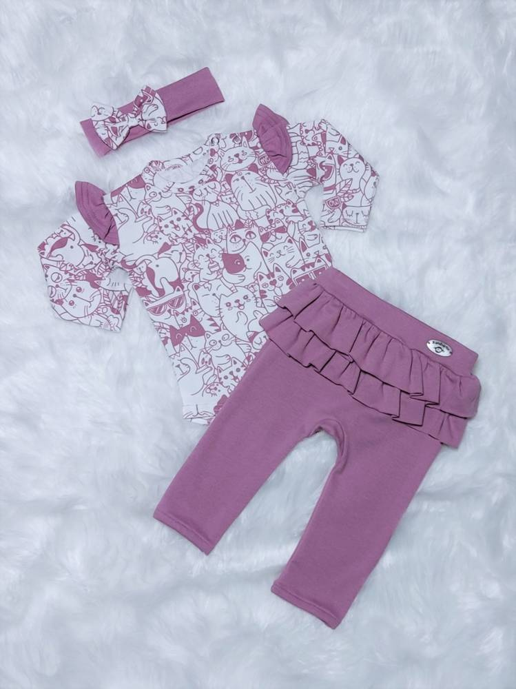 Body z długim rękawem Kotki Bambarillo pudrowy róż-granat
