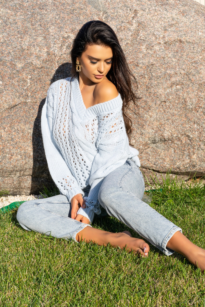 Piękny sweterek ażurowy sweterek, ozdobiony pięknym warkoczowym splotem.