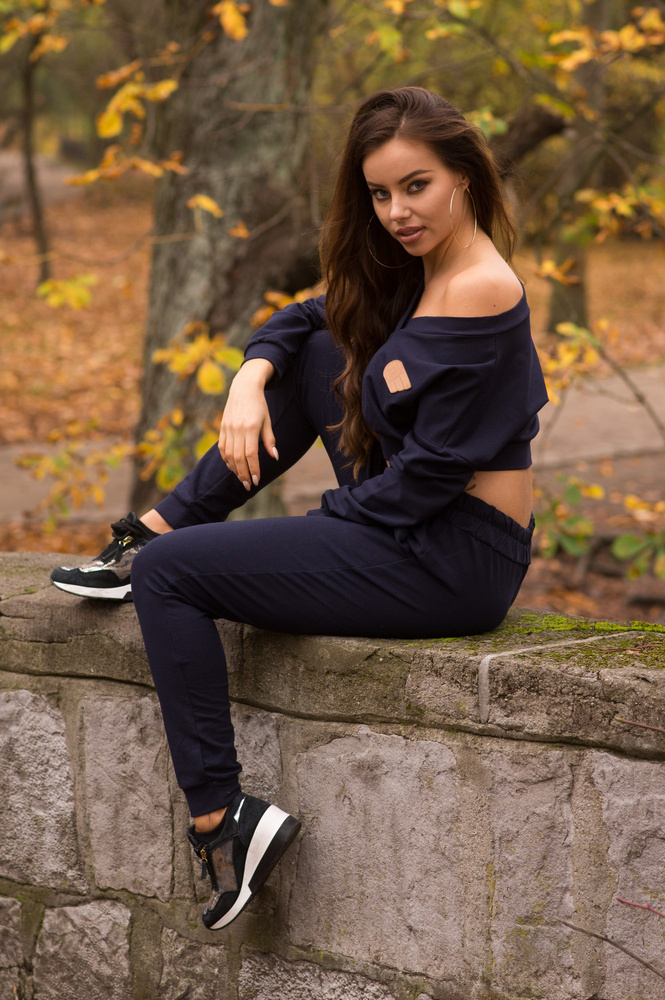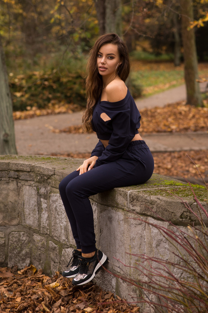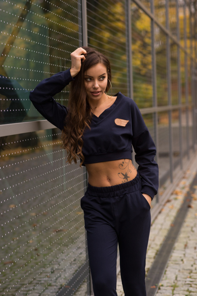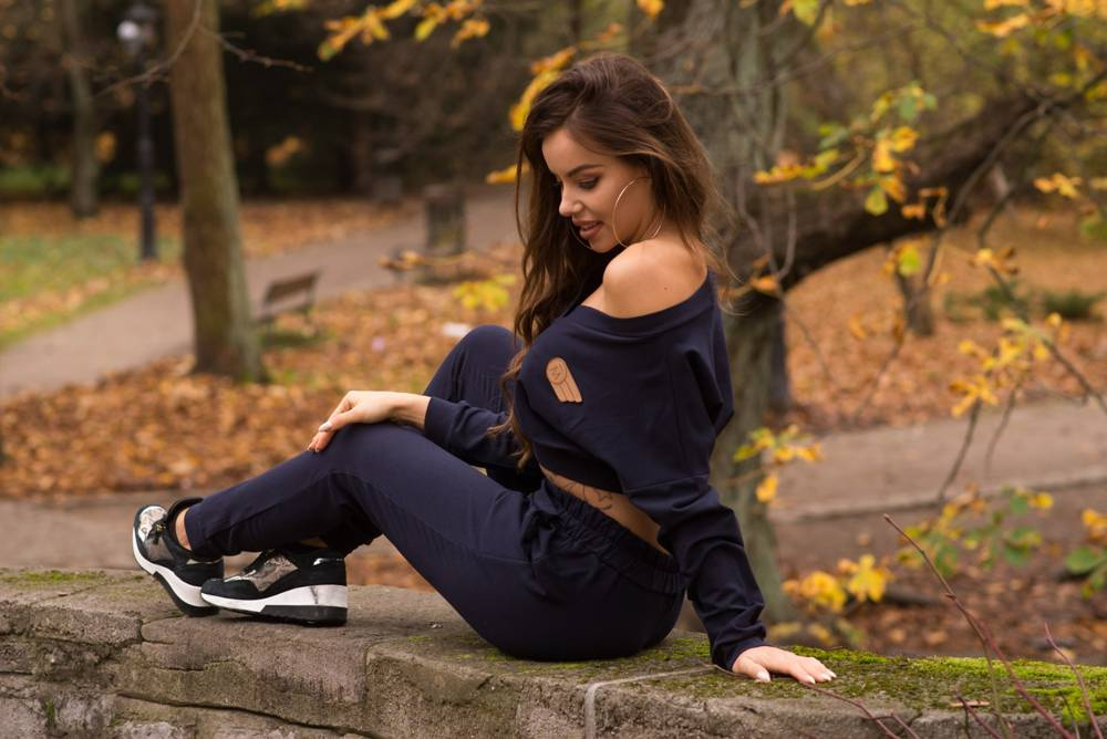 Komplet damski, sportowy. Składa się z bluzy i spodni.