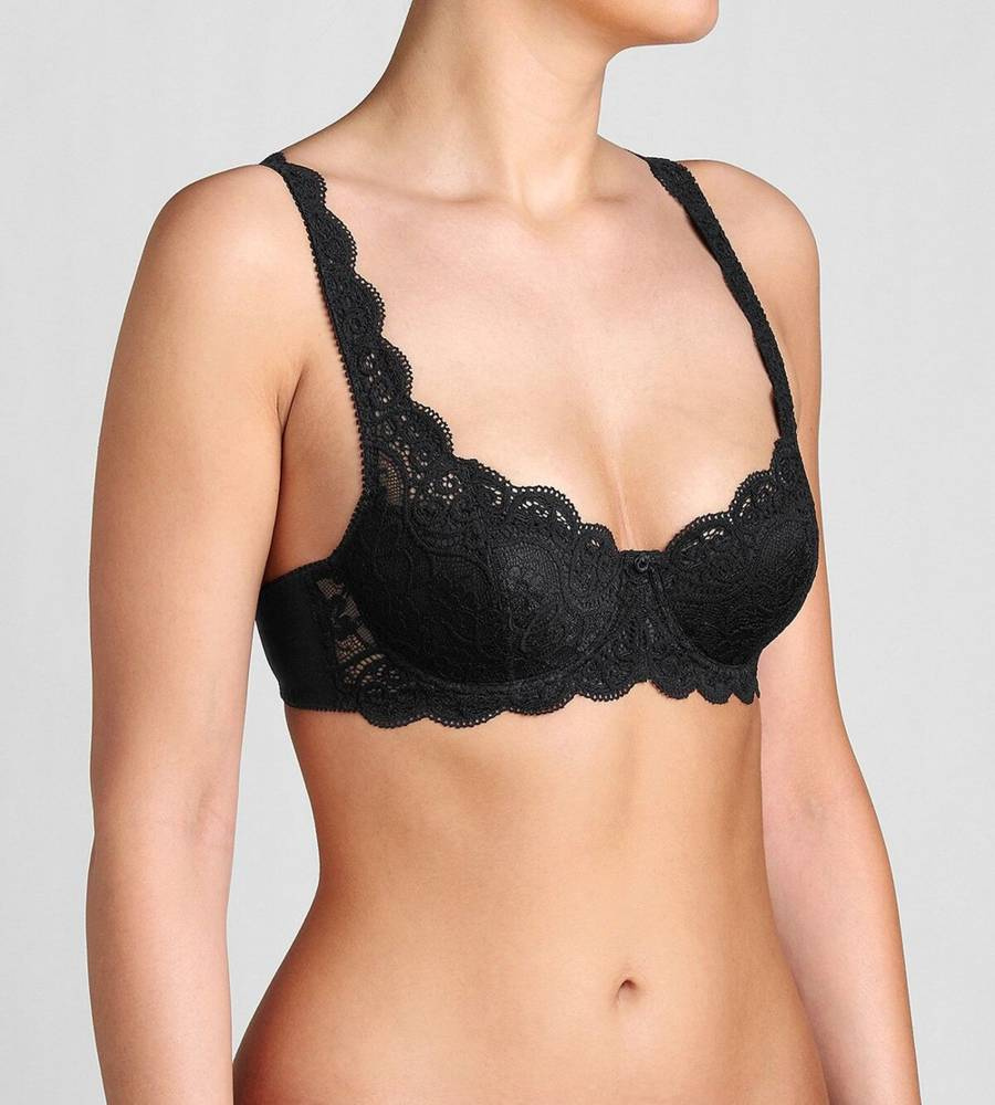 Elegancki biustonosz z usztywnionymi miseczkami na fiszbinach.