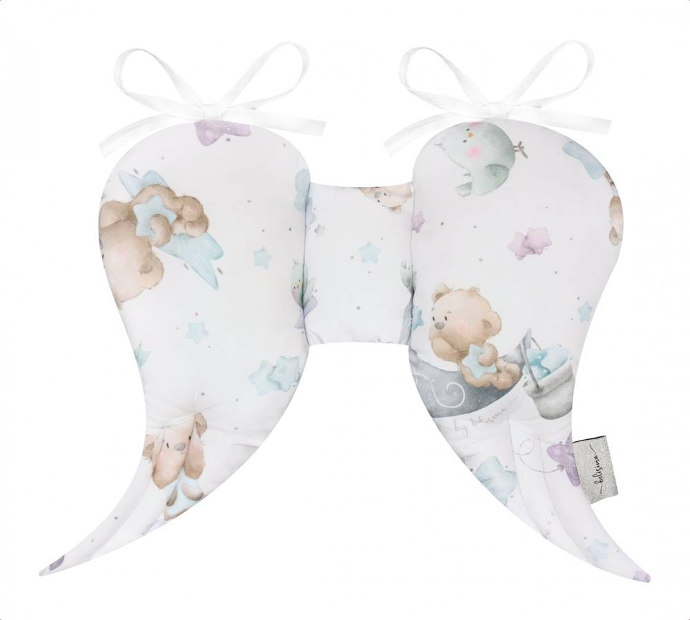 Poduszka "skrzydełka" zapewnia komfort podczas podróży, niweluje wstrząsy w czasie jazdy samochodem lub wózkiem. Dzięki specjalnemu wyprofilowaniu idealnie dopasowuje się zarówno do główki dziecka, jak i do fotelika samochodowego. Poduszka umili każdą podróż i utuli zmęczonego Maluszka do snu.