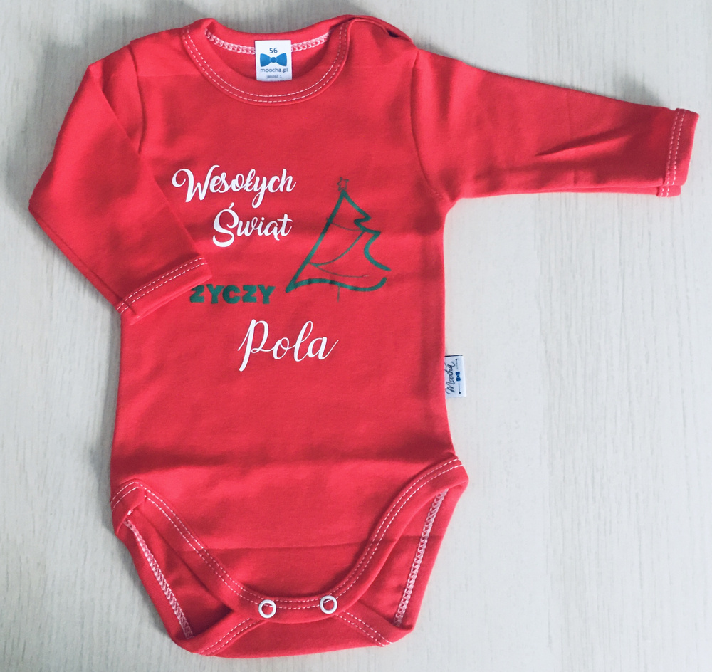 Body długi rękaw "Wesołych Świąt życzy + imię- POLA" Moocha czerwony