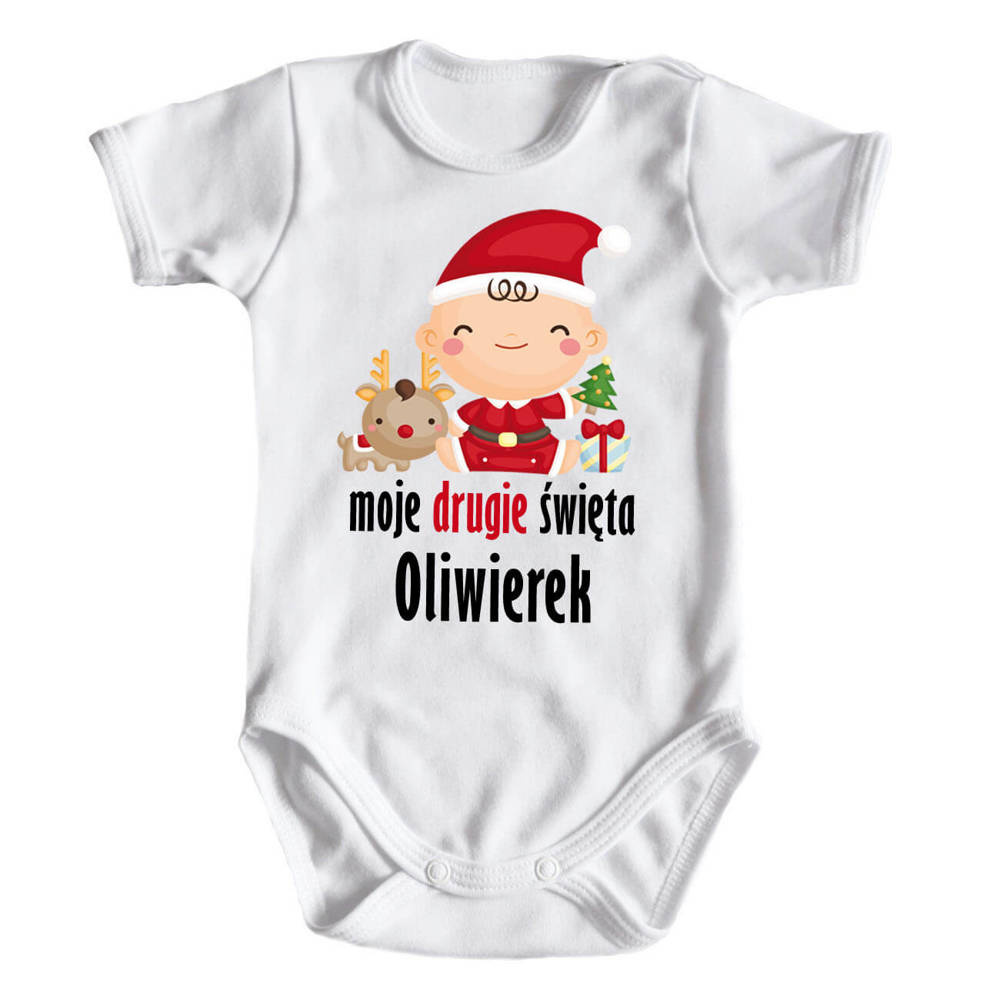 Body krótki rękaw "Moje drugie Święta z imieniem"" Moocha biały