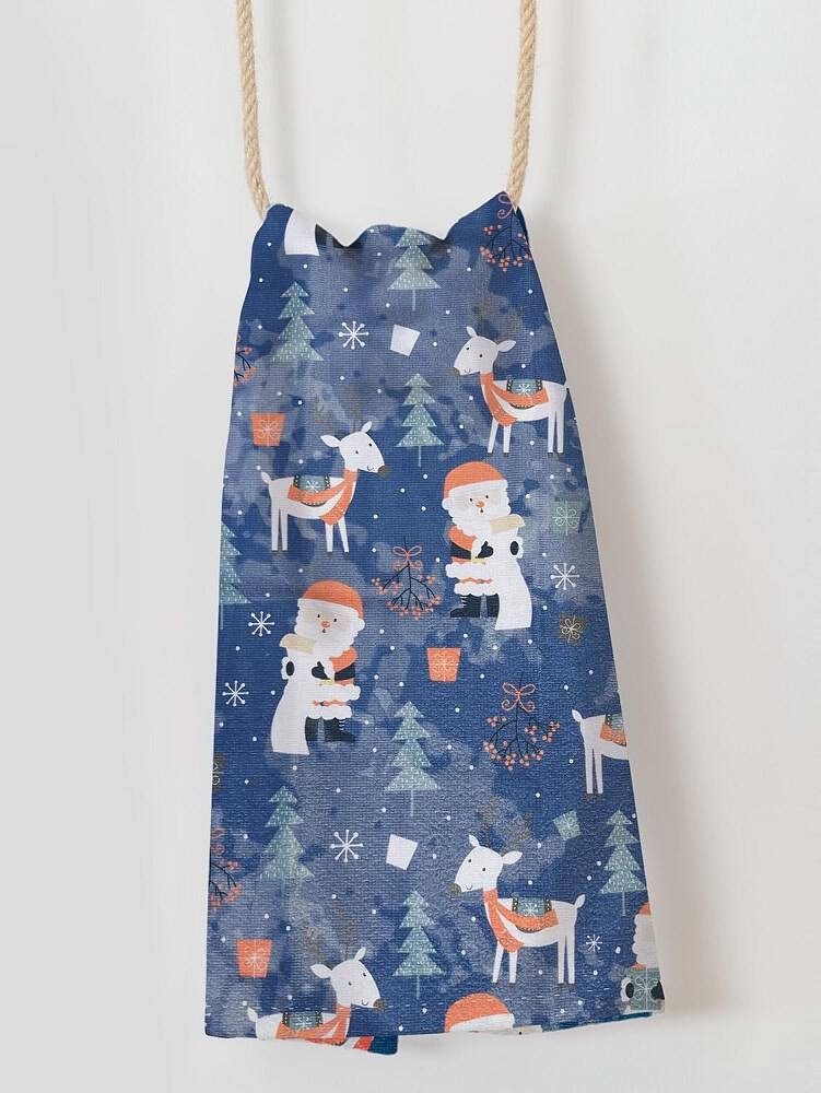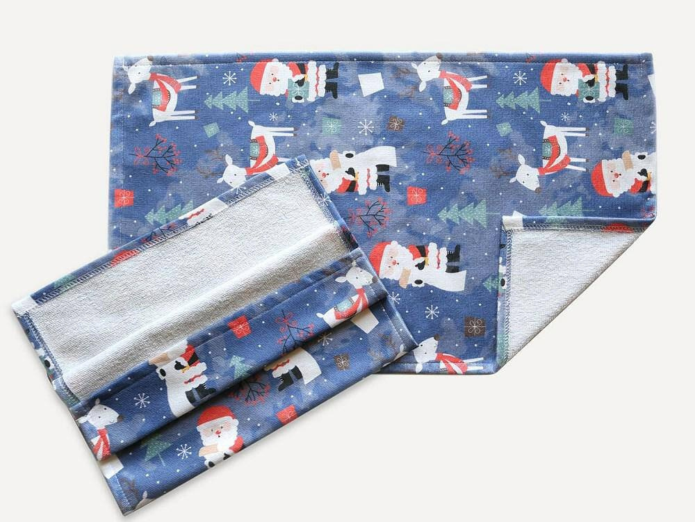 Ścierka ręcznik kuchenny o wzorze świątecznym z reniferami i mikołajami będzie wspaniałym dodatkiem bożonarodzeniowym w kuchennym zaciszu. Ręcznik świetnie wchłania wodę, jest miękki i miły w dotyku. Mocno nasycone kolory zachowują pierwotną barwę nawet po wielu praniach.