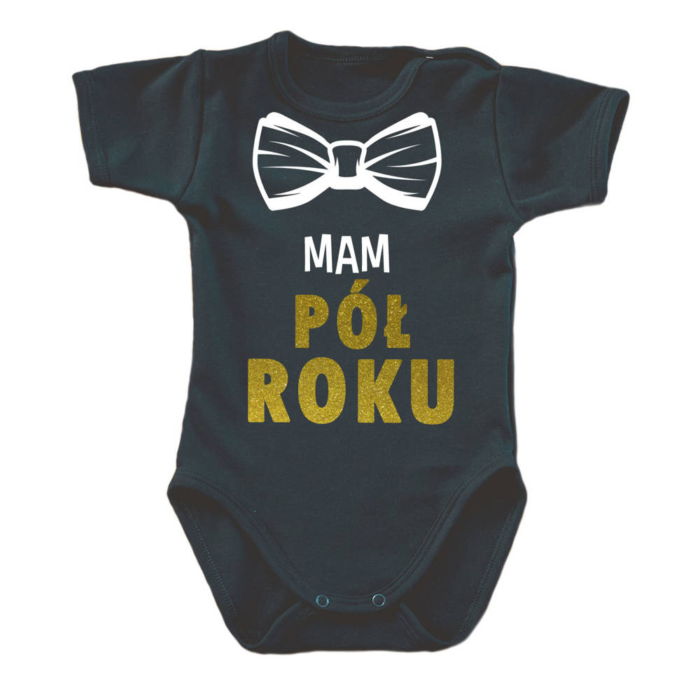 Body krótki rękaw "MAM PÓŁ ROKU" Moocha czarny