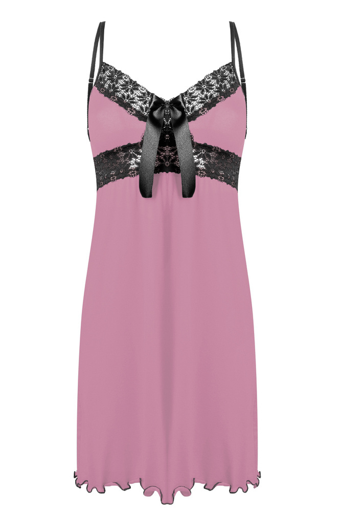 Efektowna koszulka damska z delikatnej i przyjemnej dla ciała wiskozy na cienkich ramiączkach. Z pozoru prosta, lecz tak naprawdę jest bardzo wyrafinowaną bielizną. Miseczki i pas pod biustem ozdobione elegancką czarną koronką. Na łączeniu miseczek znajduje się satynowa kokardka. Skład:  92% wiskoza, 8% elastan.