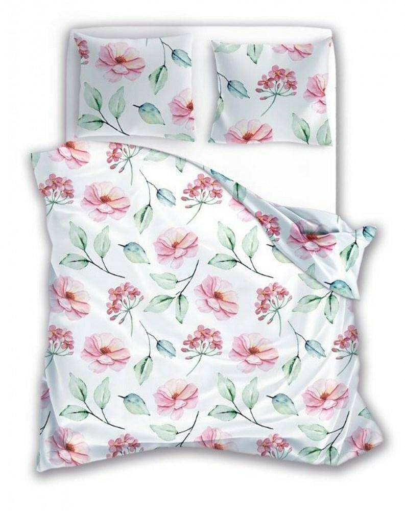 Pościel bawełniana Eufloria 012 kwiaty liście dwustronna Faro biały