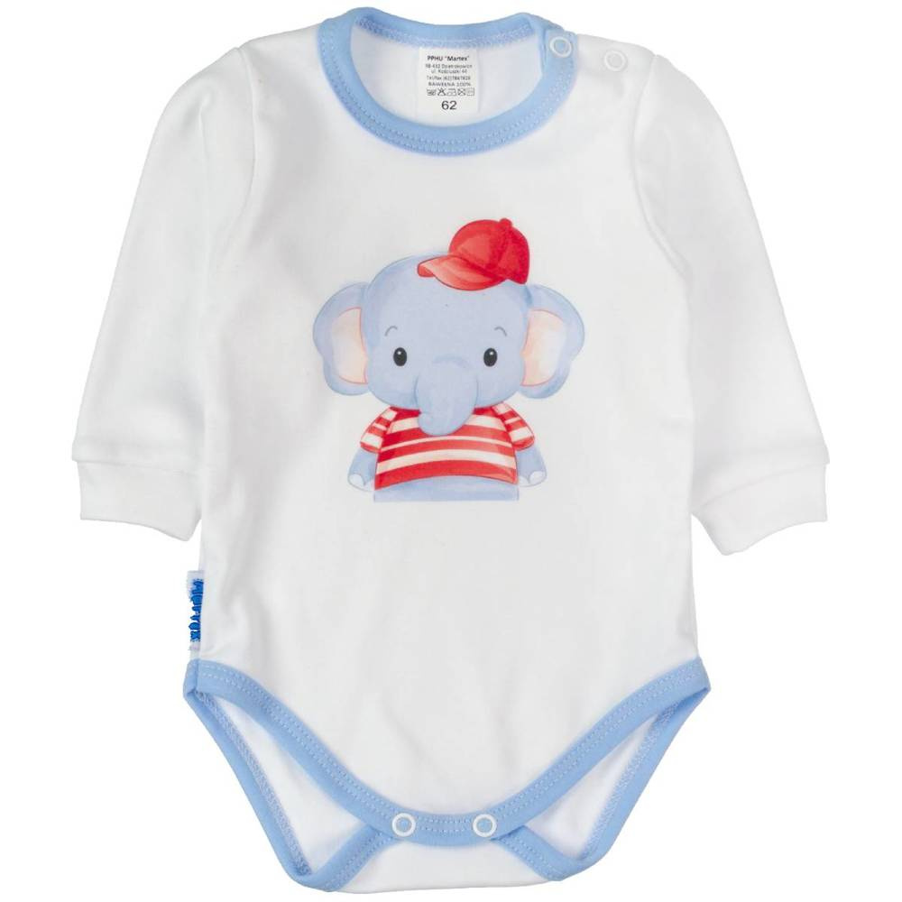 Body niemowlęce długi rękaw Słoń w czapce Martex biały