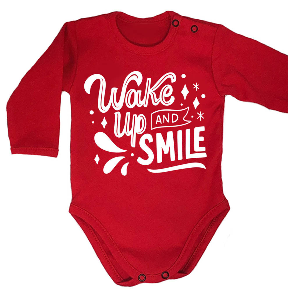 Body długi rękaw "WAKE UP AND SMILE" Moocha czerwony
