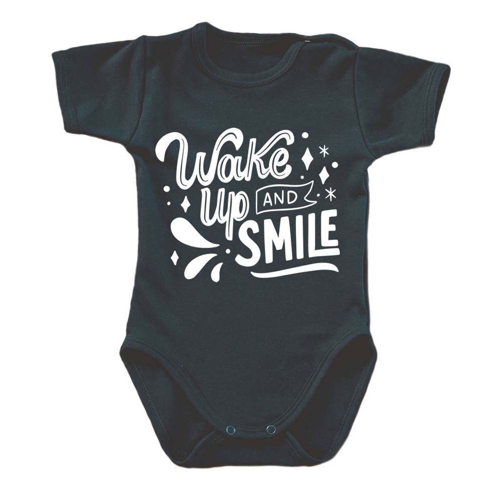 Body krótki rękaw "WAKE UP AND SMILE" Moocha czarny
