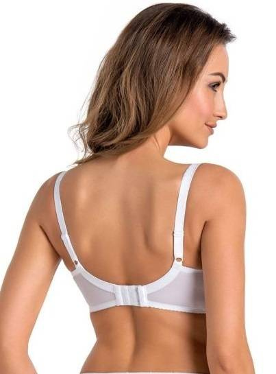 Ramiączka dopasowane są do rozmiaru piersi i dodatkowo regulowane. Zapięcia z tyłu na haftki trzy lub dwu rzędowe. Biustonosz dla matek karmiących nie ma bocznych fiszbinów, co sprawia, że nie odciska się na skórze i jest bardzo wygodny. Prany w odpowiedniej temperaturze nie zmienia fasonu.
