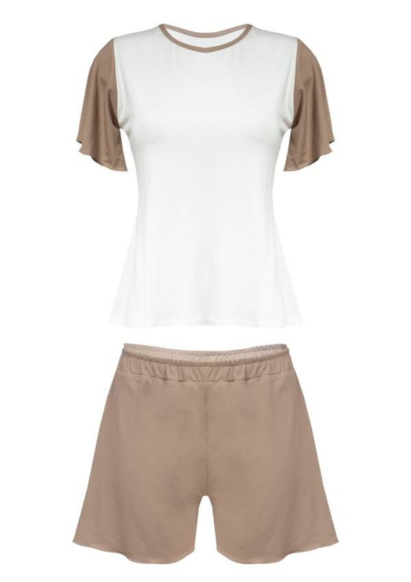 Piżama damska z wysokiej jakości miłej w dotyku wiskozy, która w połączeniu z luźnym fasonem daje maksymalny komfort noszenia. Zapewnia pełną swobodę ruchów. Bluzeczka z krótkim rękawem. Do kompletu jednolite, krótkie spodenki. Całość prezentuje się doskonale. Bardzo wygodny fason, delikatnie dopasowany do ciała. Spodoba się kobietom, które uwielbiają delikatność i swobodę.