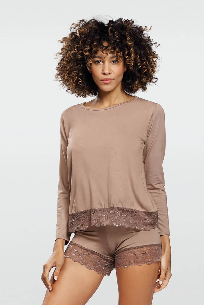 Komplet Piżama Damska Kornelia DKaren - Cappucino