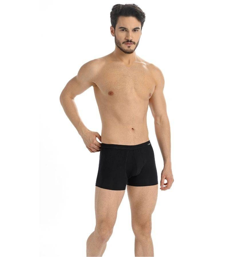 Klasyczne bokserki wykonane z wysokogatunkowej bawełny z dodatkiem włókna lycry, dzięki czemu idealnie dopasowują się do męskiej sylwetki. Posiadają obcisłe nogawki, które podkreślają uda i wykończone są delikatnym szwem. Bokserki prane w odpowiedniej temperaturze zachowają swoją żywotność na długi czas, nie rozciągną się i nie zmienią fasonu. Zestaw bokserek to doskonała propozycja na prezent.