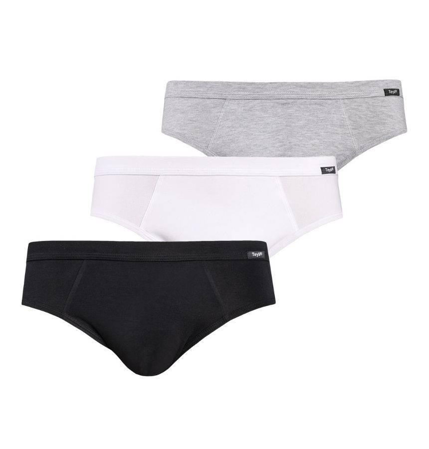 Klasyczne Slipy wykonane z wysokogatunkowej bawełny z dodatkiem włókna lycry, dzięki czemu idealnie dopasowują się do męskiej sylwetki. Trójpak slipów męskich w trzech podstawowych kolorach czarnym, białym i jasnoszarym