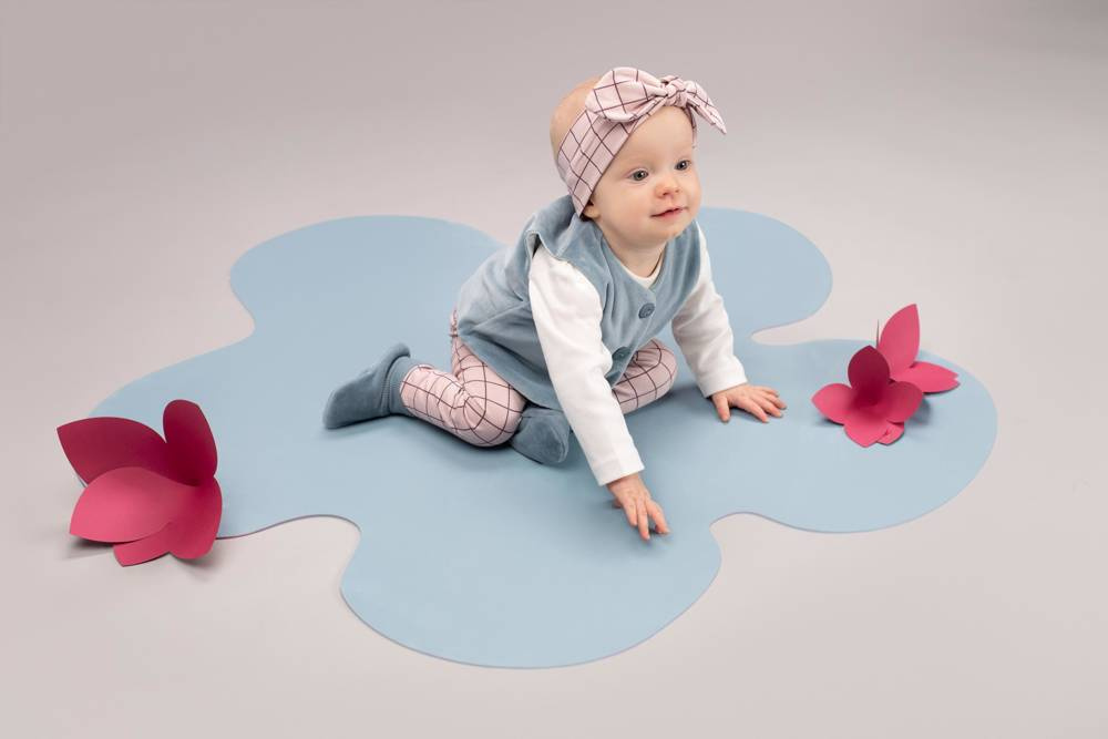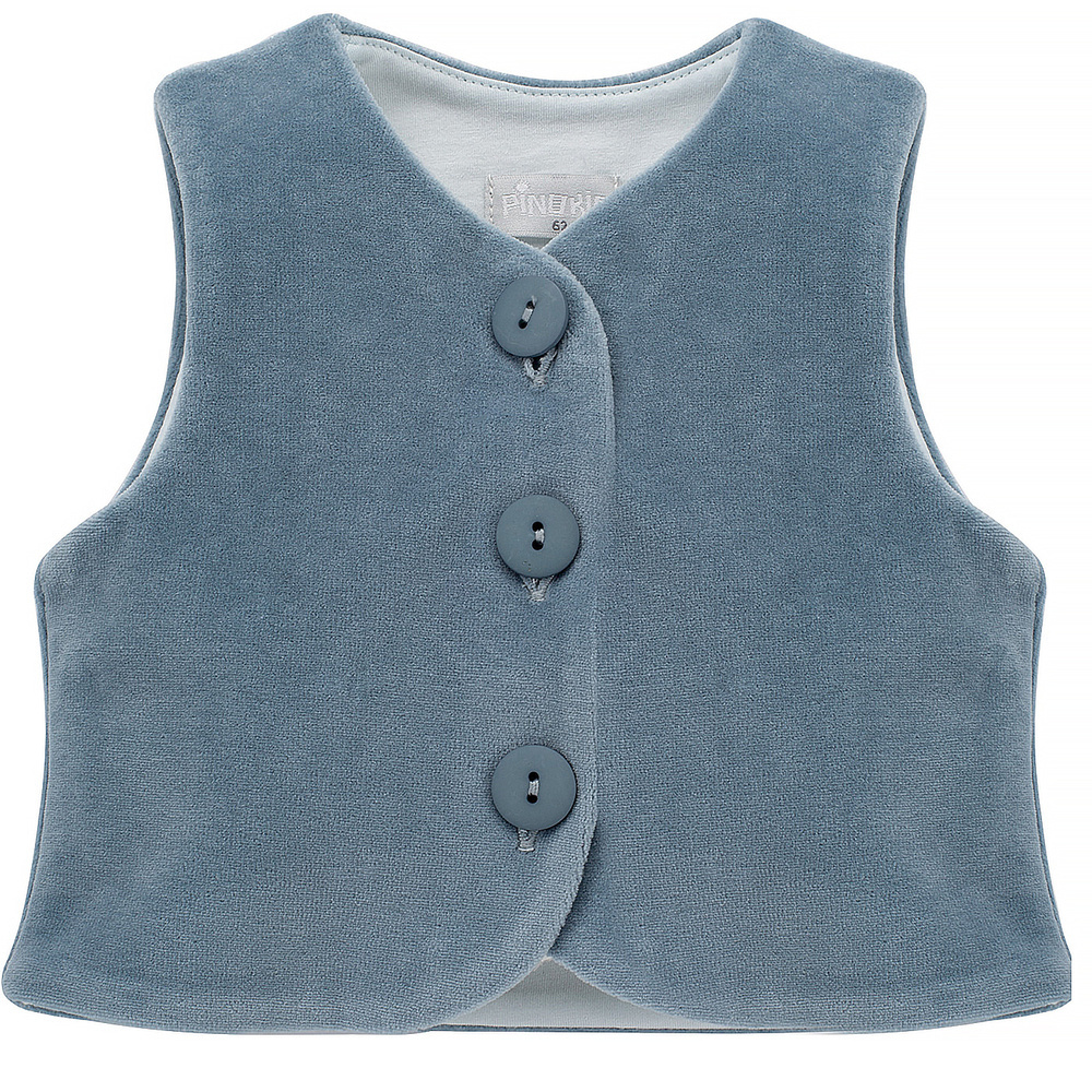 Kamizelka zapinana na guziki. Swobodny krój nie krępuje ruchów malucha i zapewnia mu komfort podczas codziennych aktywności. Można jej też używać jako tymczasowe ubranko przy zmieniającej się temperaturze w czasie podróży samochodem.