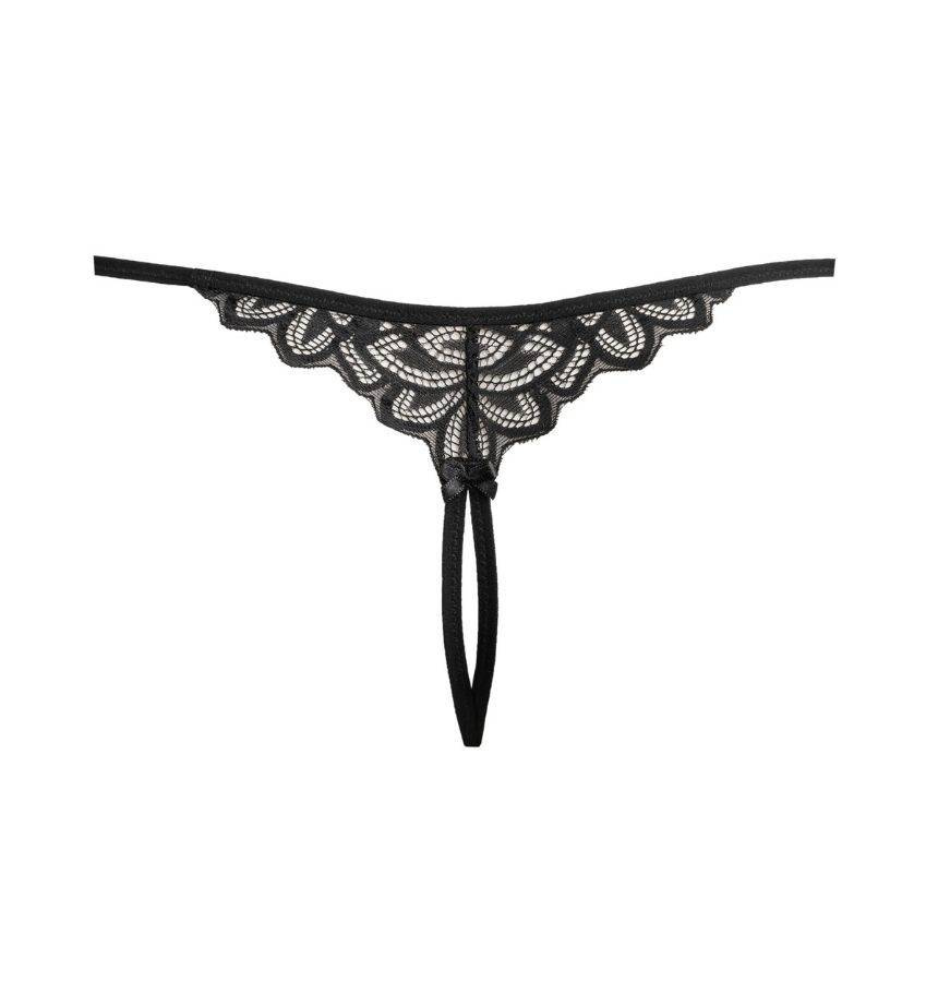 - Seksowne stringi koronkowe z dziurką w kolorze czarnym.