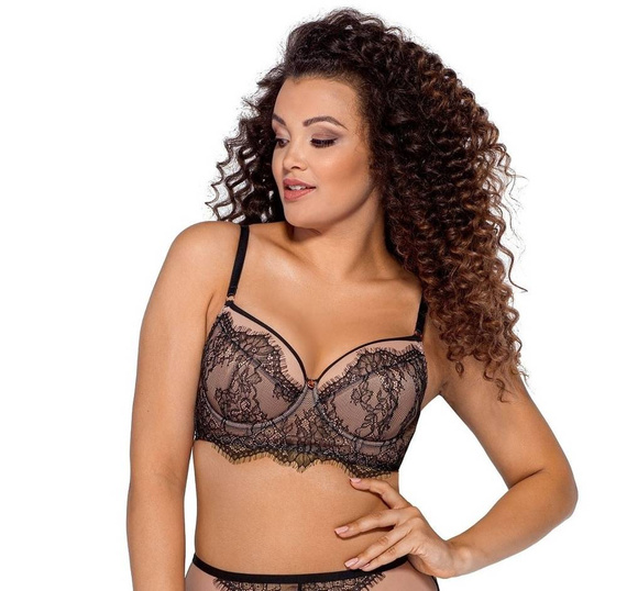 - wykonany z beżowego tiulu w połączeniu z delikatną koronką w czarnym kolorze