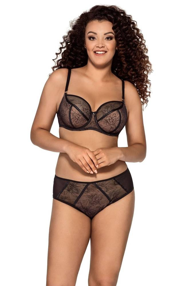 Zmysłowy biustonosz półusztywniany wykonany z wzorzystej siateczki