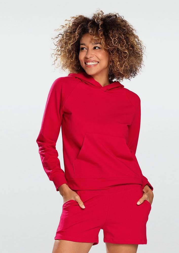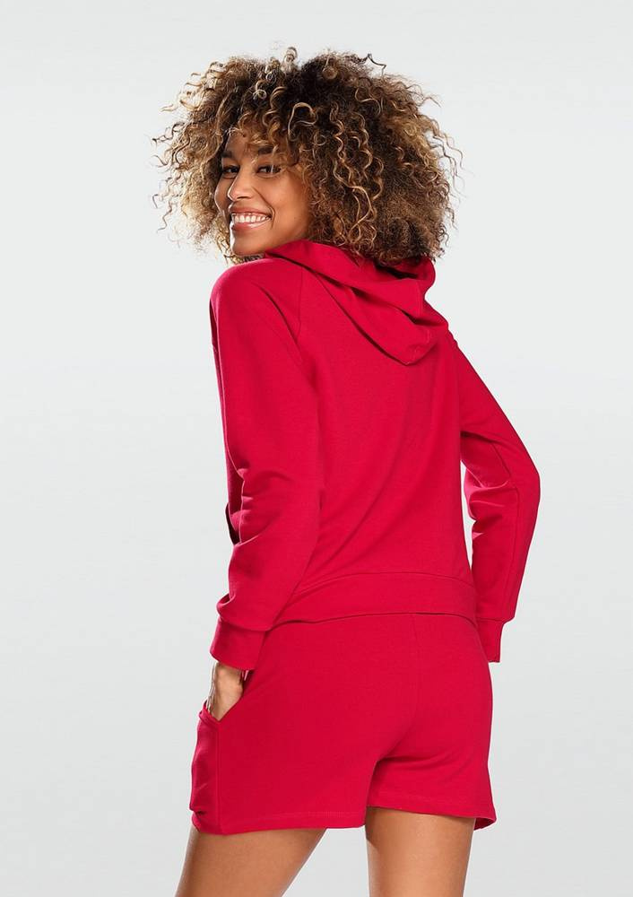 Komplet damski, sportowy. Składa się z klasycznej bluzy z kapturem oraz krótkich spodenek z gumką w pasie i kieszeniami. Komplet uszyty z miękkich, oddychających tkanin, które zapewnią uczucie chłodu i wygody przez cały dzień. Zestaw dostępny jest w wielu wersjach kolorystycznych.