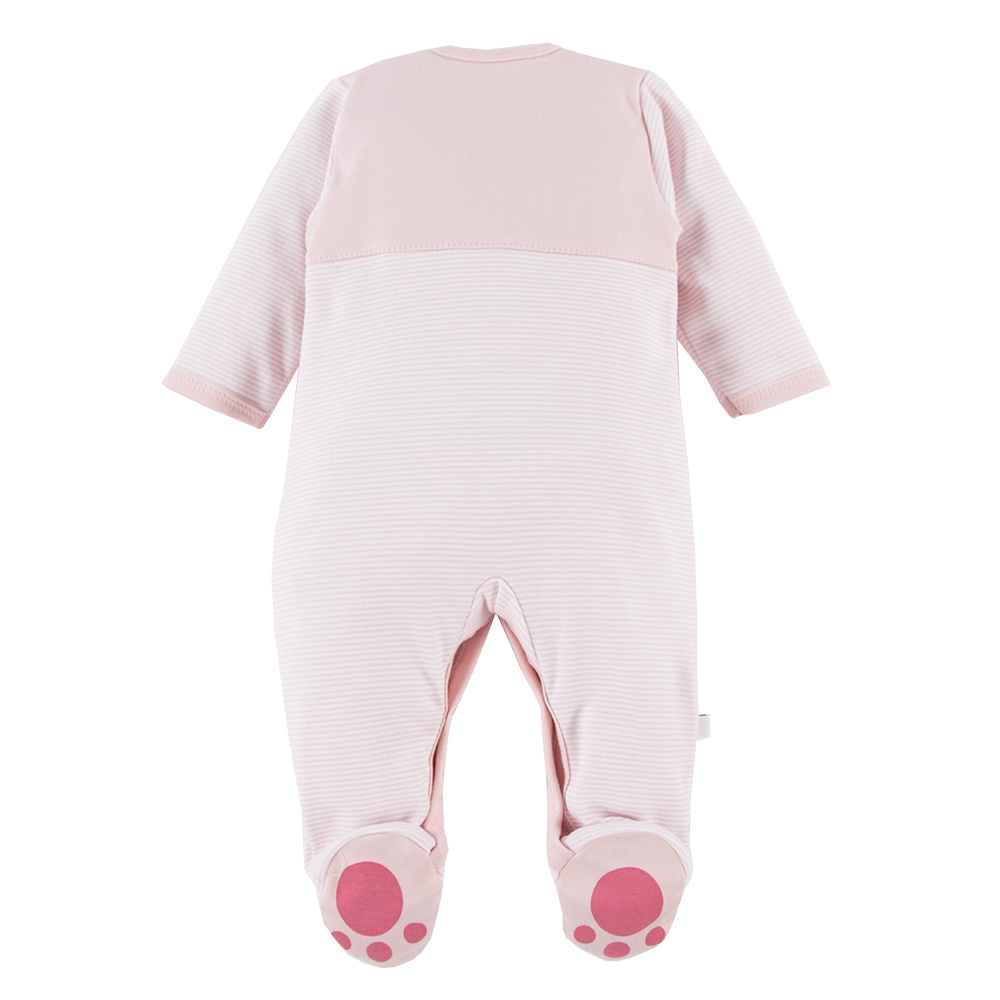 Pajac niemowlęcy ze stópkami Big Bear Eevi - różowy paski