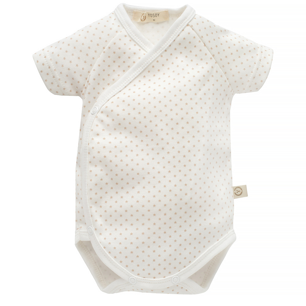 Kopertowe body z krótkim rękawem wykonane z wysokiej jakości delikatnej w dotyku bawełny. Rozpinane na całej długości na specjalne zatrzaski. To wygodne rozwiązanie ułatwia przewijanie i ubieranie maluszka. Body to niezbędny element niemowlęcej wyprawki.