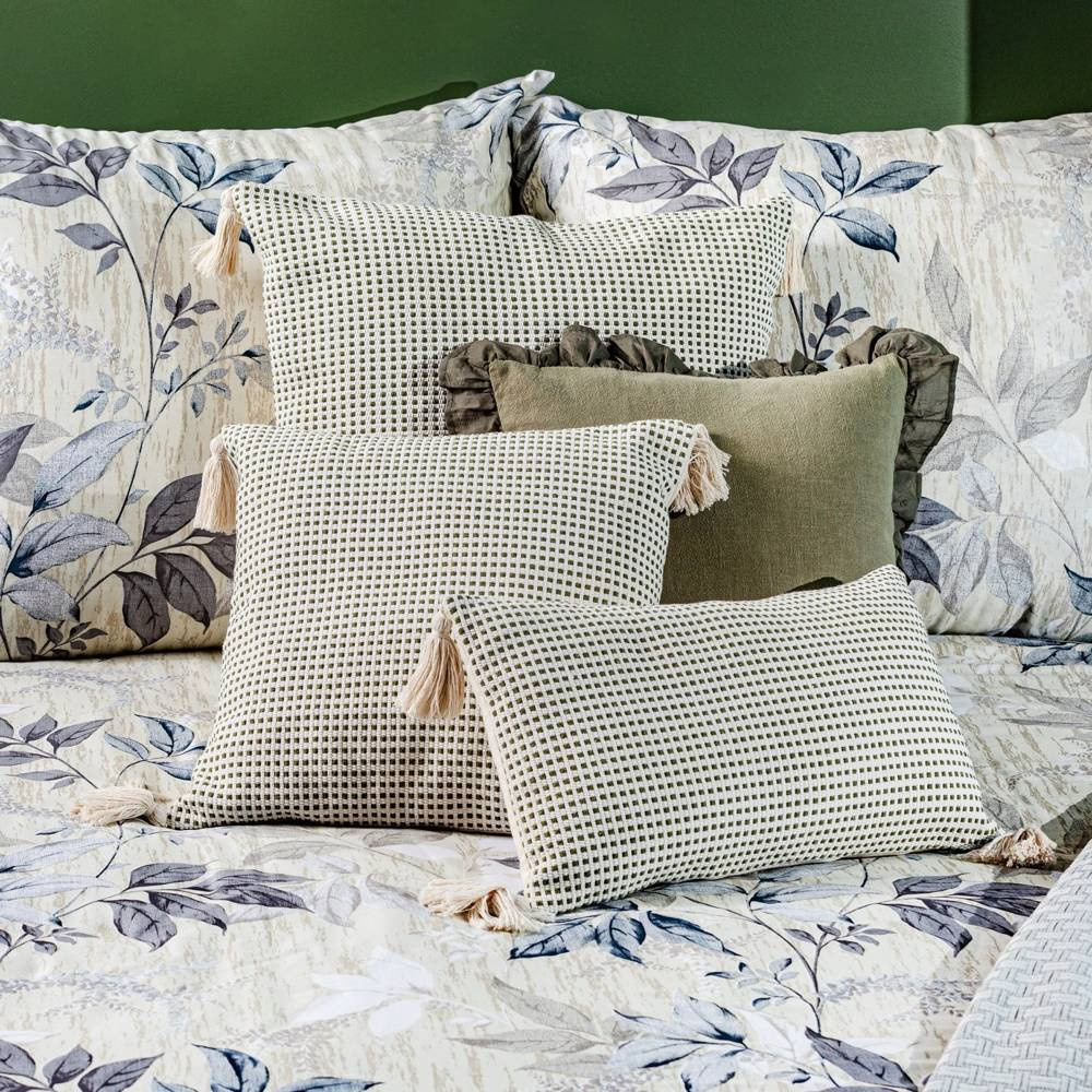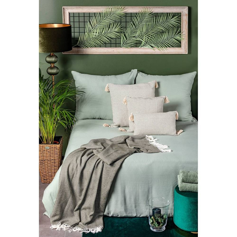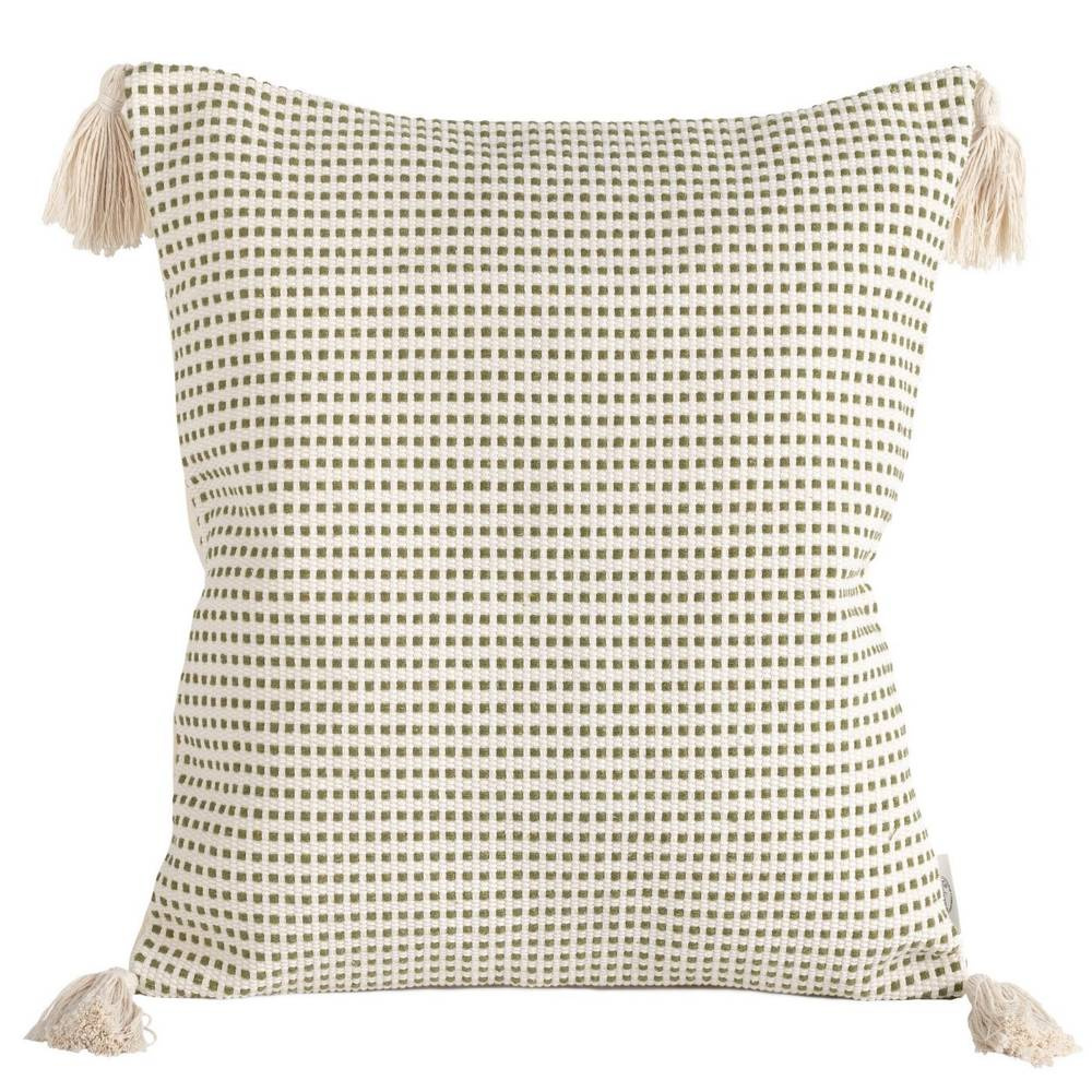 Poszewka utkana z grubych bawełnianych nici w drobny żakardowy wzór, to wyjątkowa ozdoba, wnosząca do wnętrza spokój i świeżość. Pozwala w prosty i szybki sposób upiększyć każde wnętrze, dodać mu przytulności albo nawet całkowicie odmienić. Ozdobne chwosty na rogach sprawiają, że poszewka jest niezwykle elegancka.