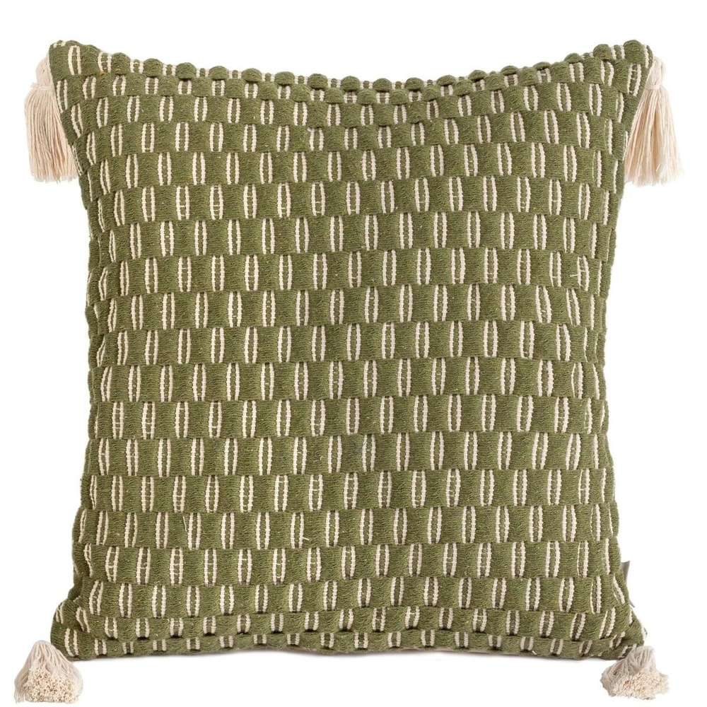 Poszewka utkana z grubych bawełnianych nici w drobny żakardowy wzór, to wyjątkowa ozdoba, wnosząca do wnętrza spokój i świeżość. Pozwala w prosty i szybki sposób upiększyć każde wnętrze, dodać mu przytulności albo nawet całkowicie odmienić. Ozdobne chwosty na rogach sprawiają, że poszewka jest niezwykle elegancka.