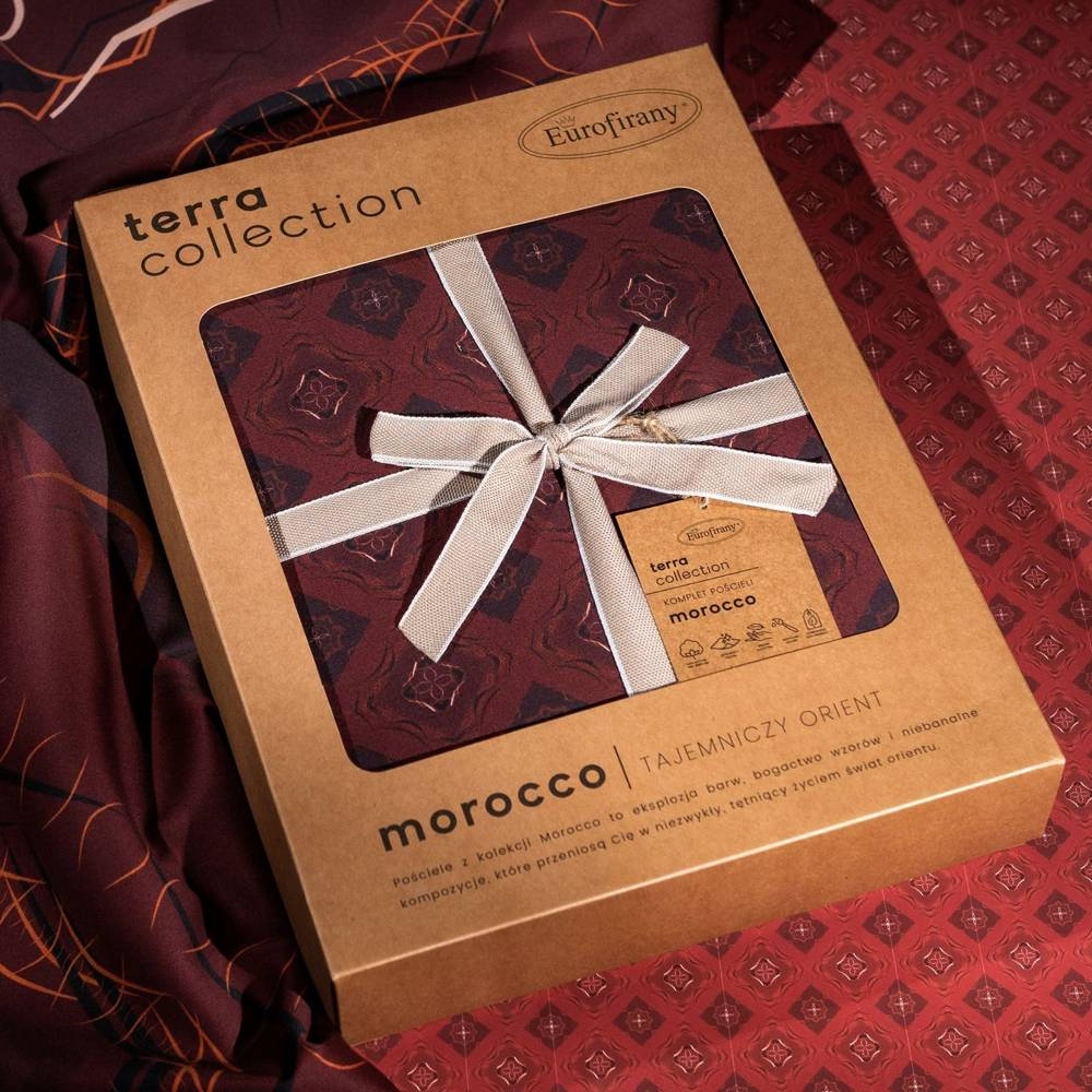 Symetrycznie rozmieszczony nadruk drobnych geometrycznych elementów zdobi komplet pościeli MOROCCO z makosatyny bawełnianej. Tkanina stosowana do produkcji kompletów pościeli wykonana jest z wysokiej jakości przędz, co w połączeniu z nowoczesnym wzornictwem i odpowiednio nasyconą kolorystyką, daje produkt o bardzo wysokiej jakości. Pościel posiada system praktycznych zamków błyskawicznych, dzięki czemu zmiana pościeli zajmuje tylko krótką chwilę. Pościel posiada certyfikat Oeko-Tex tekstylia godne zaufania. Ekologiczne kartonowe opakowanie jest w pełni biodegradowalne, a przy tym sprawia, że produkt znakomicie się prezentuje i jest idealny na prezent.