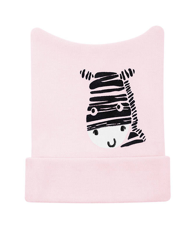 Czapeczka wykonana z delikatnej 100% bawełny. Niezbędna od pierwszych dni życia Maleństwa. Idealnie nadaje się do założenia po kąpieli. Dzięki użyciu odpowiednich materiałów, czapka delikatnie dopasowuje się do kształtu głowy dziecka. Całość ożywia delikatny nadruk.