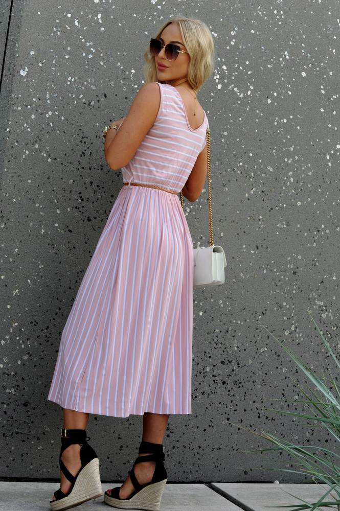 Kobieca, zwiewna sukienka wiązana w pasie- pasek w zestawie.