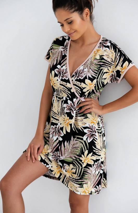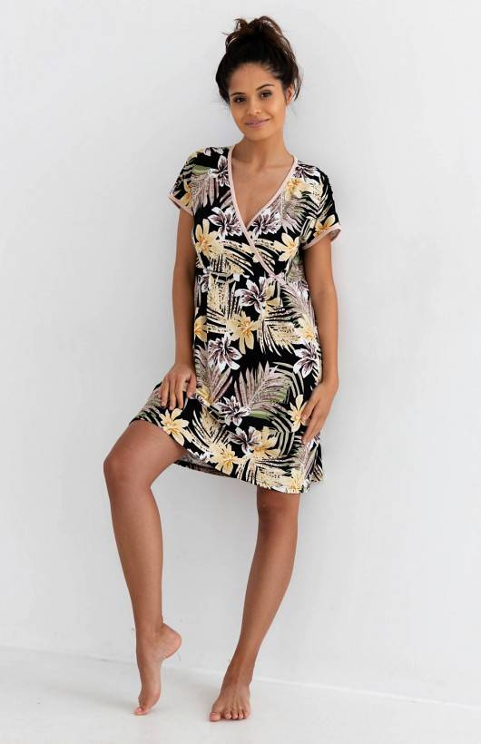 Koszulka damska marki Sensis. Model wykonany z wysokiej jakości, miłej w dotyku wiskozy. Posiada dekolt w kształcie litery "V" oraz krótki rękaw. Bardzo wygodny fason, delikatnie dopasowany do ciała. Spodoba się kobietom, które uwielbiają delikatność i swobodę.