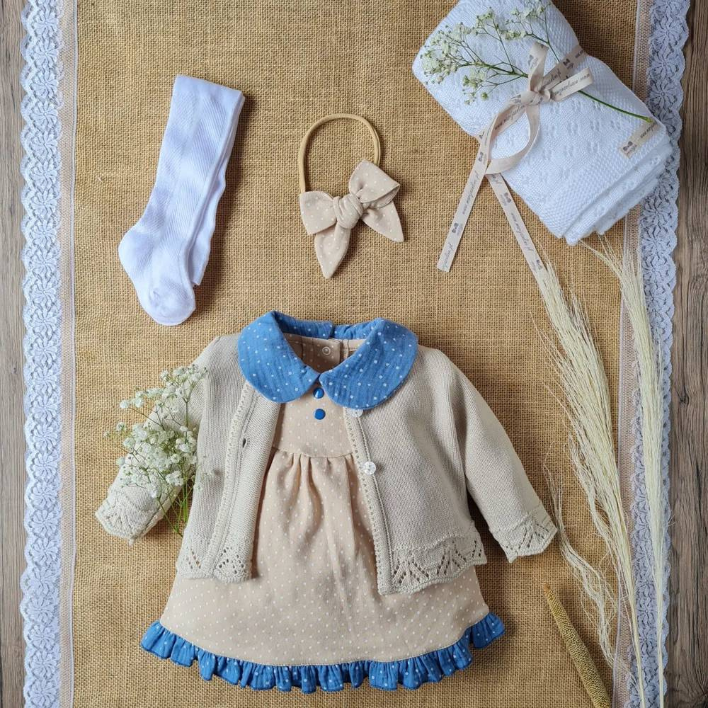 Urocza, dziewczęca sukienka, wykonana z 100% bawełny. Z przodu ozdobiona kołnierzykiem. Sukienka bardzo ładnie komponuje się z pozostałymi ubrankami z kolekcji Sophie.