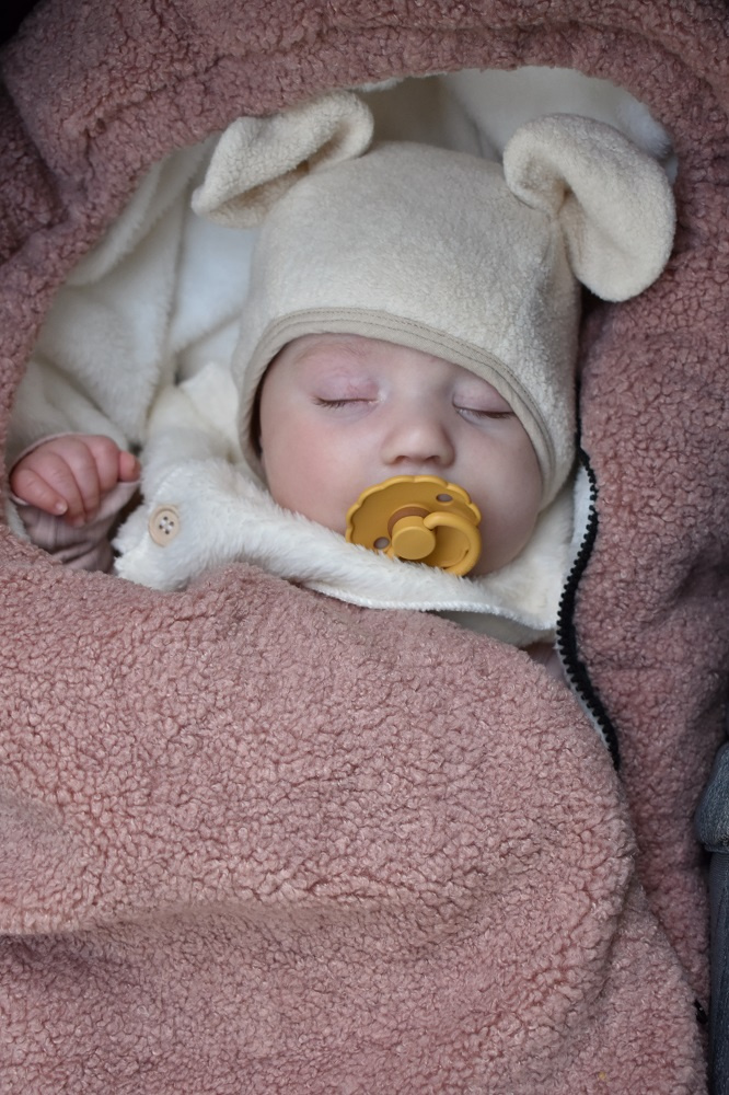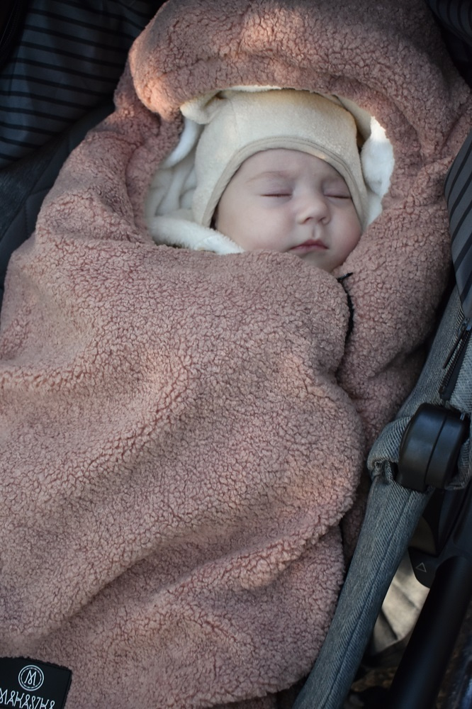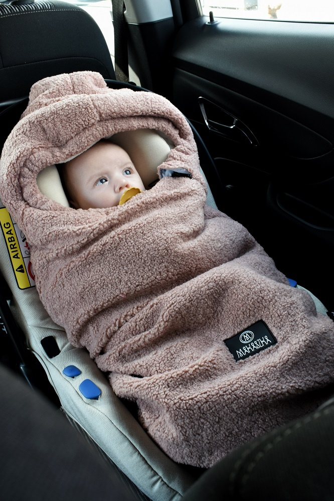 Cieplutki, wygodny i niesamowicie miękki śpiworek do gondoli, fotelika samochodowego, czy spacerówki. Ma 80cm długości. Zapinany jest na długi suwak, dzięki czemu można odpiąć większość śpiworka żeby wygodnie włożyć do niego maluszka. Wyposażony jest w otwory na trzy i pięciopunktowe pasy bezpieczeństwa, dzięki czemu pasuje do większości spacerówek i fotelików.