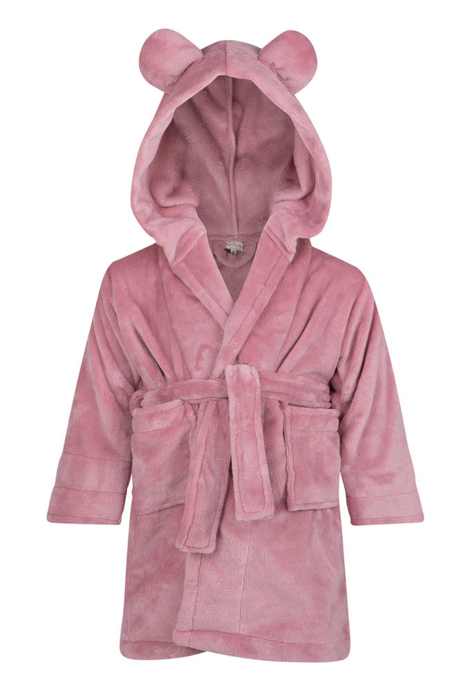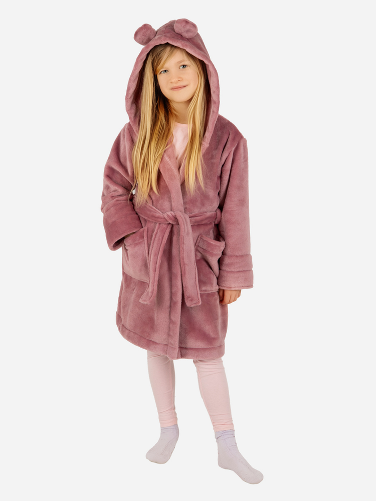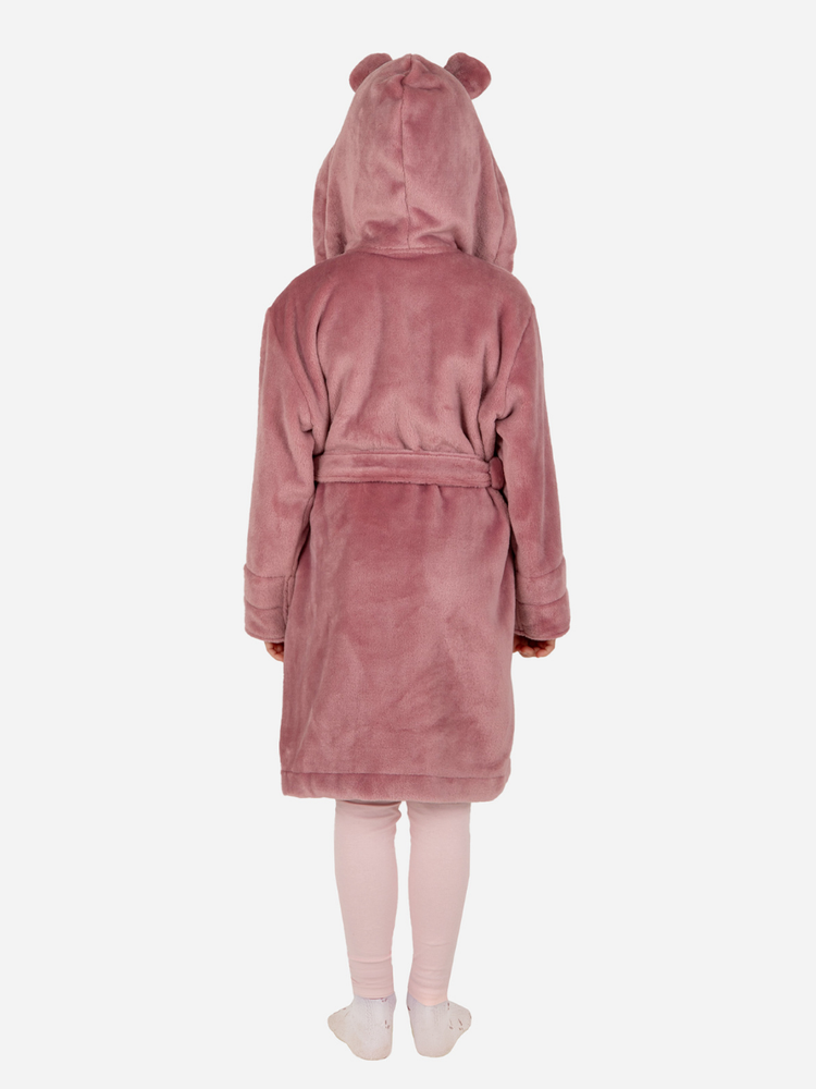 Szlafrok dziecięcy z uszami Teddy ByShelly - brudny róż