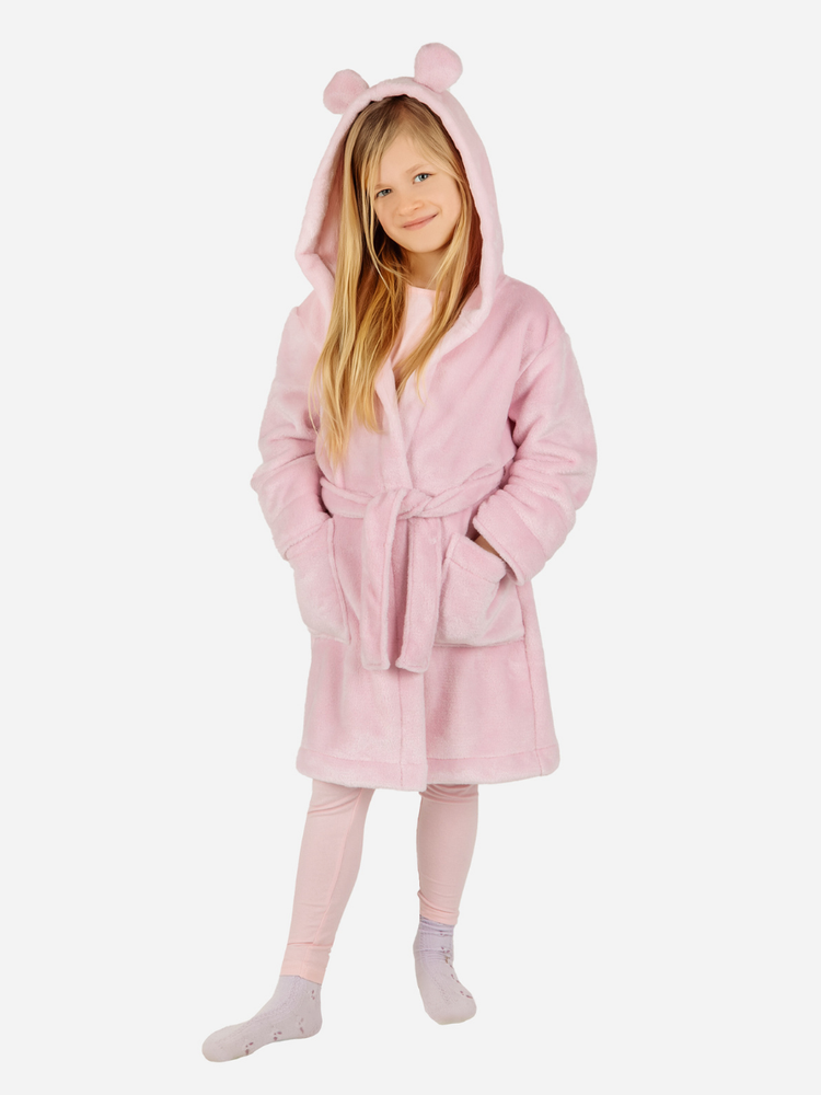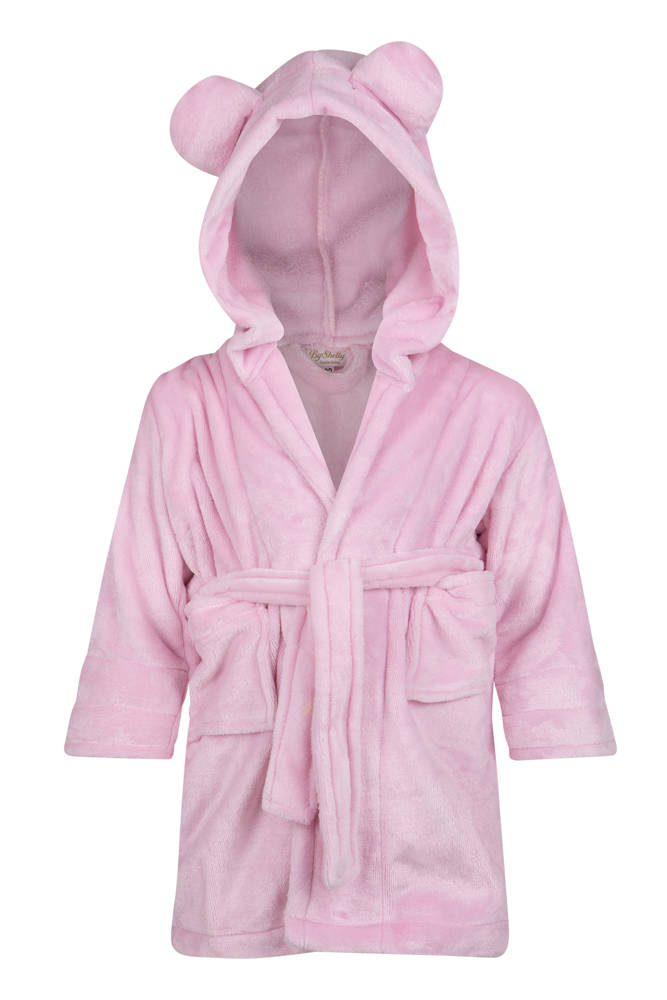 Szlafrok dziecięcy z uszami Teddy ByShelly - jasny róż