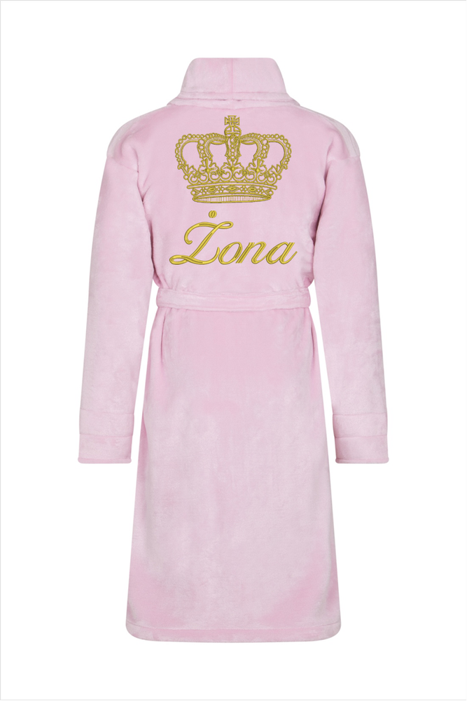 Szlafrok damski polarowy Żona + Korona ByShelly - jasny róż/złoty