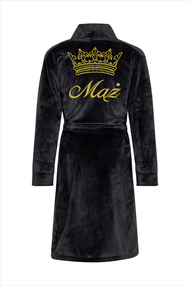 Szlafrok męski Mąż + Korona ByShelly - czarny/złoty