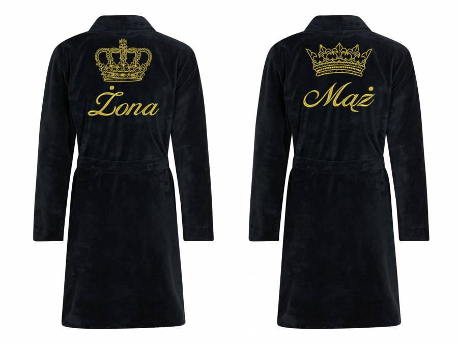 Zestaw szlafroków Żona&Mąż + Korona ByShelly - czarny/złoty